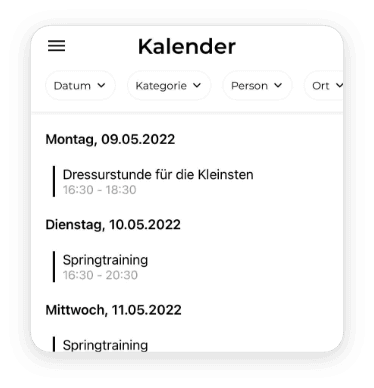 Wichtige Termine, Hallenbelegungen, Mannschaftstrainings - immer mit dabei.